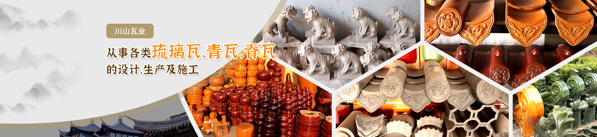 山東淄博川山瓦業(yè)位于山東省淄博市淄川區(qū)蒲松齡的故鄉(xiāng),公司從事各類琉璃瓦、青磚青瓦、園林古建瓦、鍍金瓦、磚雕石雕的設(shè)計(jì)、生產(chǎn)及施工多年,各種產(chǎn)品規(guī)格型號(hào)齊全,配套造型優(yōu)美,古香古色,產(chǎn)品具有色澤均勻,永不褪色,抗凍性強(qiáng),耐酸堿等特點(diǎn),主要產(chǎn)品有:板瓦、筒瓦、勾頭、滴水、當(dāng)勾、折腰、套獸、垂獸、跑獸、正吻、翹角、寶頂、龍鳳脊、花脊、筒脊、等系列產(chǎn)品。